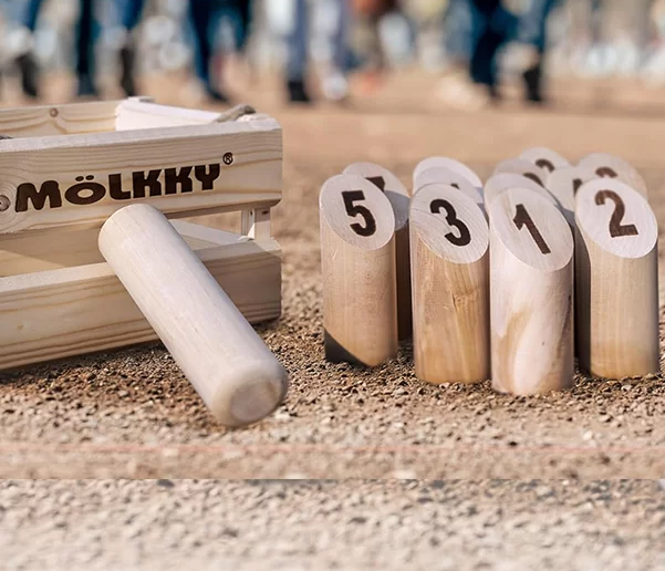 Jeu de quilles finlandais pouvant se pratiquer à partir de 2 joueurs où l’objectif est de renverser des quilles numérotées de 1 à 12 à l’aide d’un bâton cylindrique.